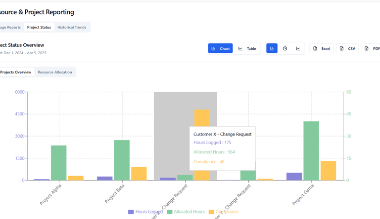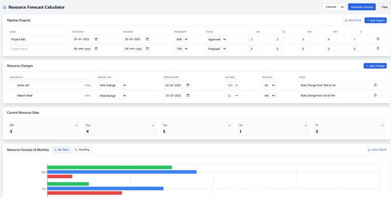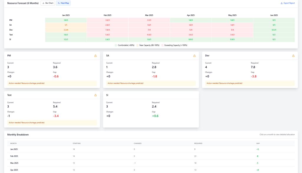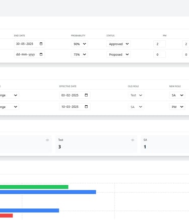 Predict capacity stress, role shortages, and margin risk using real utilization behavior, time-sheet trends, and cost rate cards—not guesswork