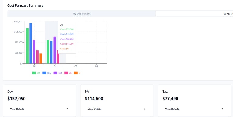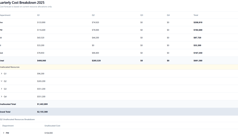Effectively analyze resource needs for upcoming projects and effortlessly evaluate the costs of both allocated and unallocated resources for current and future initiatives