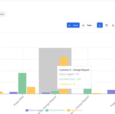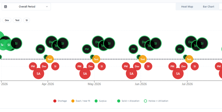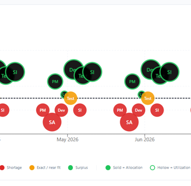 Predict capacity stress, role shortages, and margin risk using real utilization behavior, time-sheet trends, and cost rate cards—not guesswork